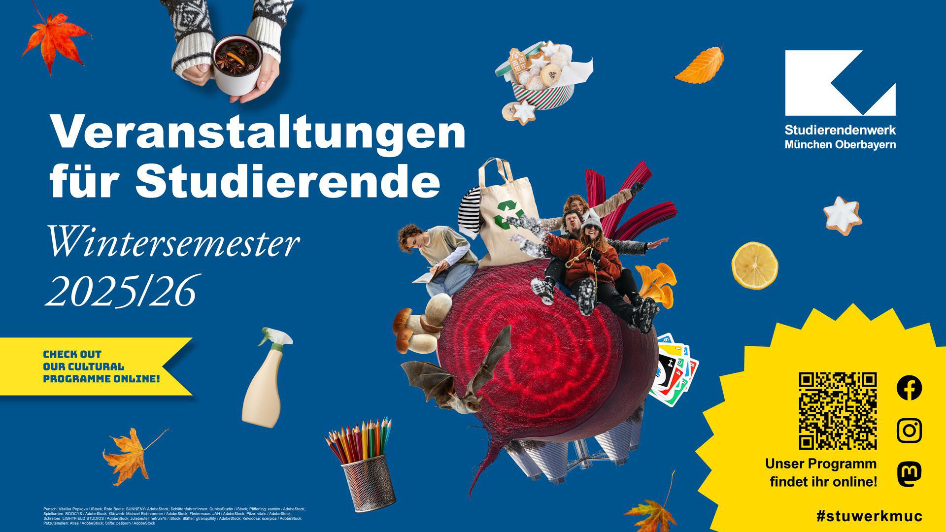 Es ist bereits herbstlich kalt und das Wintersemester steht vor der Tür! Wir wünschen euch einen guten Semesterstart und laden euch mit unserem Kulturprogramm ein Leute kennenzulernen, Neues auszuprobieren, die Münchner Umgebung zu entdecken und dabei einen Ausgleich zum Unialltag zu haben. Schaut doch mal auf unser neues buntes Kultur- und Freizeitprogramm mit vielen kostengünstigen Angeboten nur für euch.