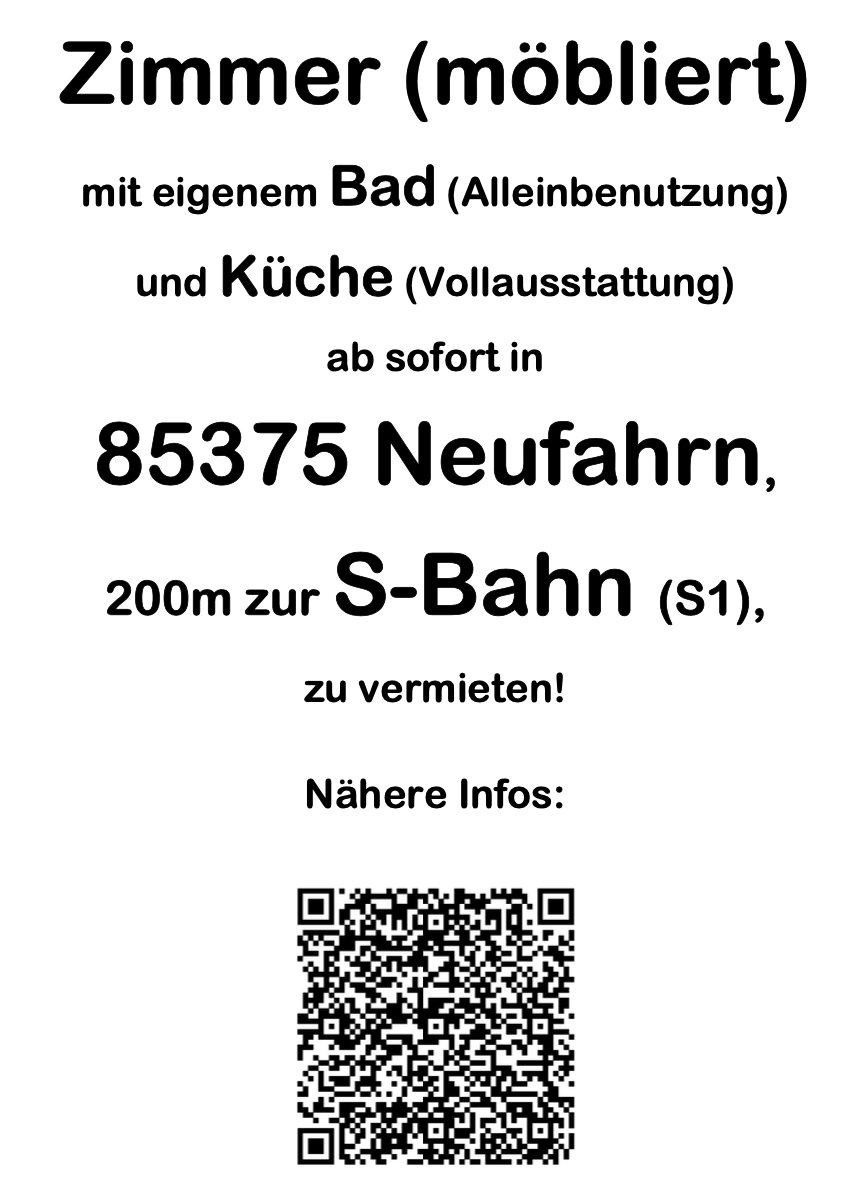 Detail-Infos Zimmer Neufahrn m. QR-Code