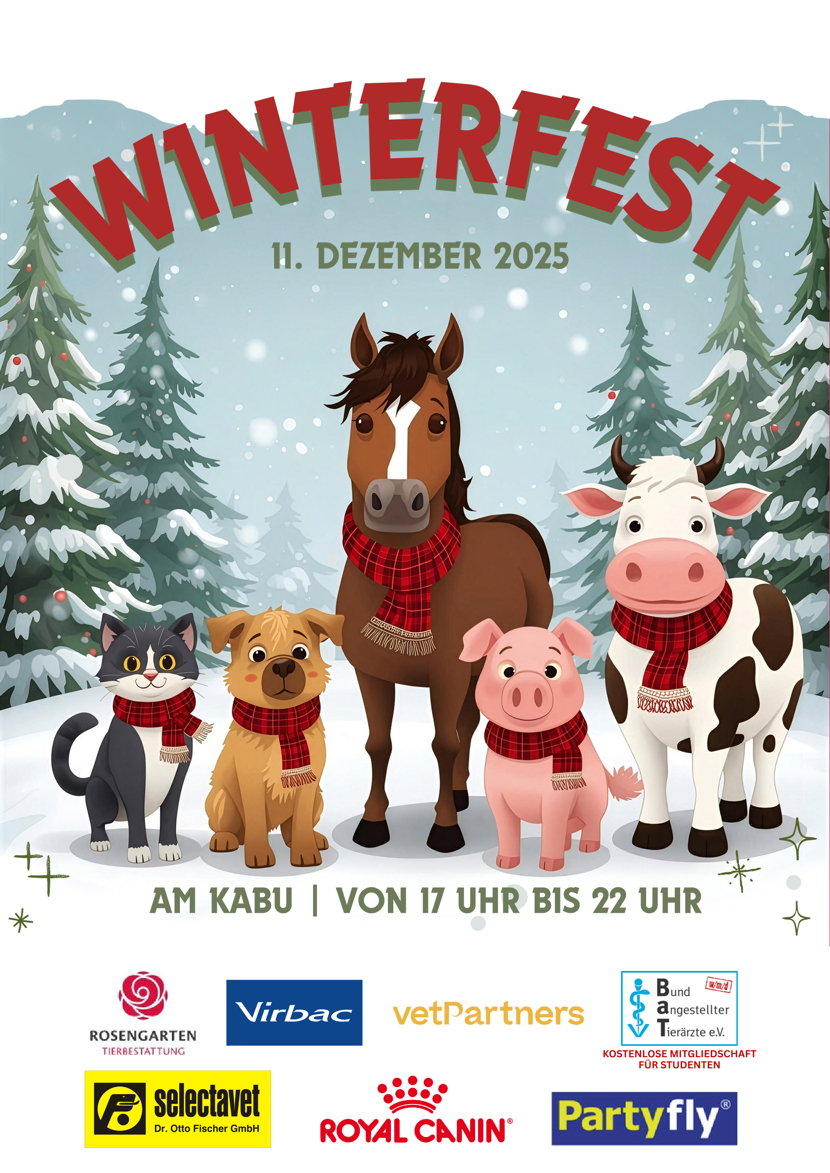 Am 11.12.2025 von 17:00 Uhr bis 22.00 Uhr findet das diesjährige Fakultätswinterfest statt. Die Semester und studentischen Vereine bieten wieder verschiedenste Leckerein und Getränke an. Das Winterfest findet am Kabu auf dem Innenstadtcampus statt.