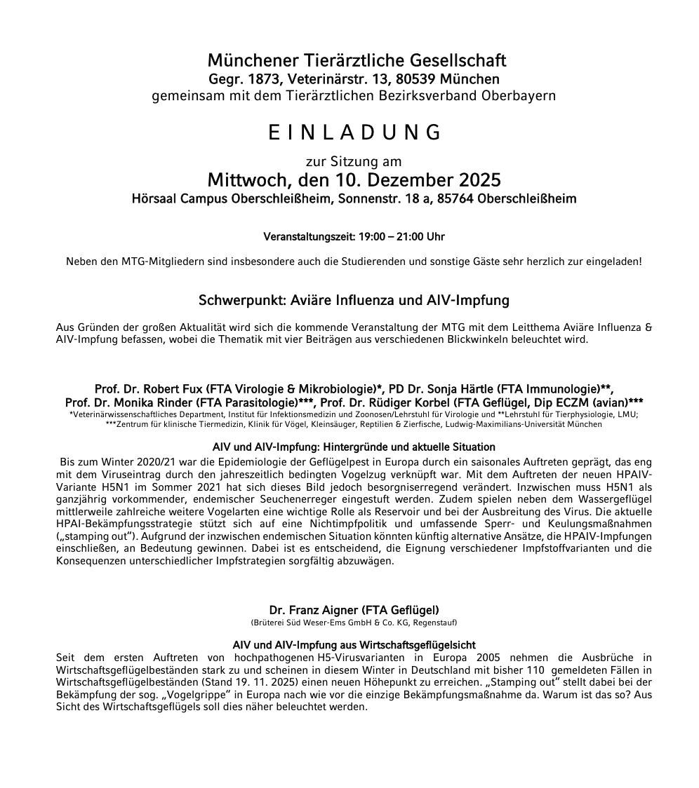 Einladung zur Veranstaltung der Münchner Tierärztlichen Gesellschaft