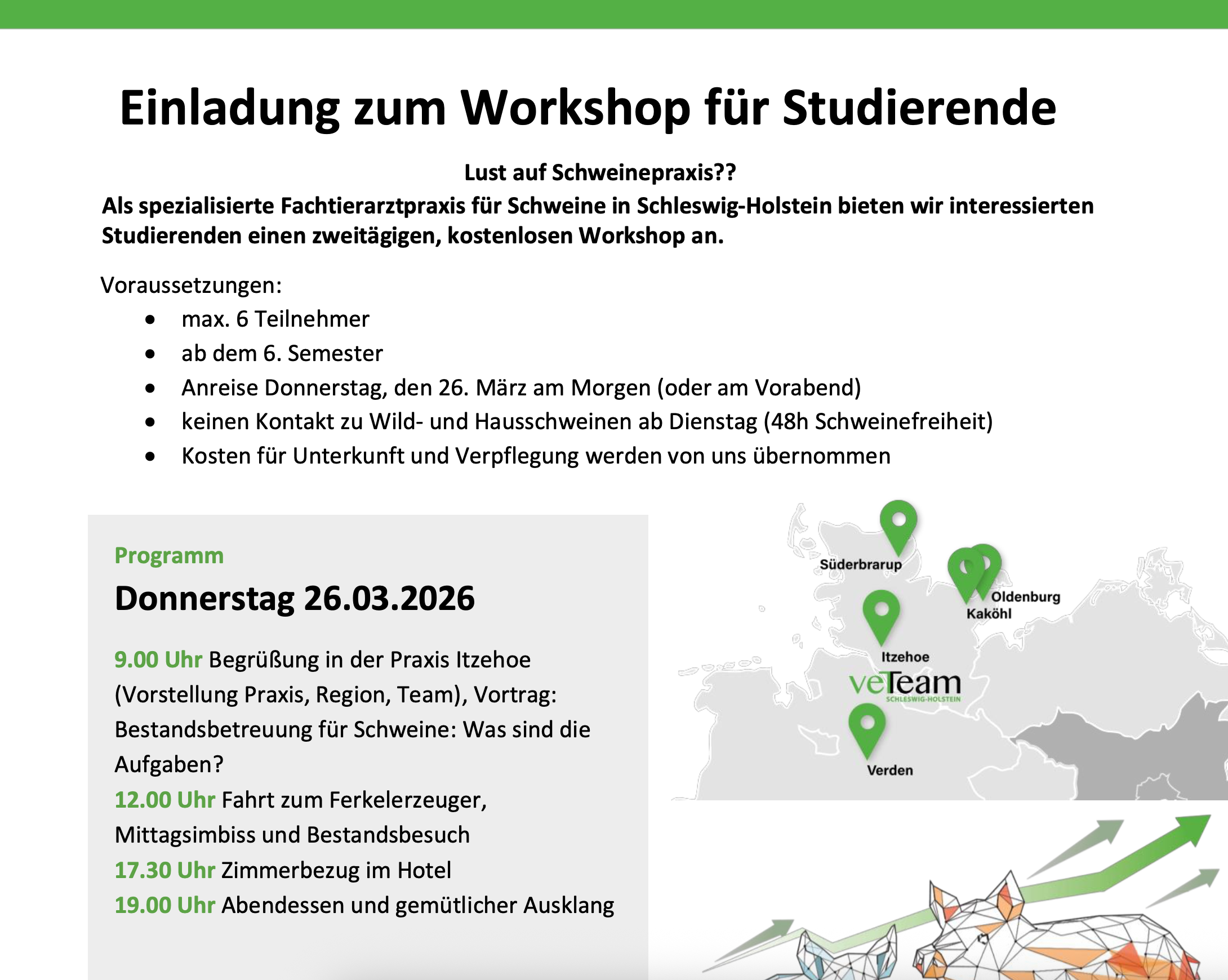 Im März findet am vetxperts Standort in Schleswig-Holstein noch ein Workshop Schweinemedizin statt.