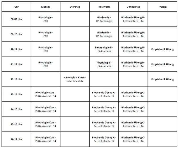 Dies sind der aktuelle Stundenplan für das zweite Fachsemester im Sommersemester 2025. Es können sich kurzfristig noch Änderungen ergeben!